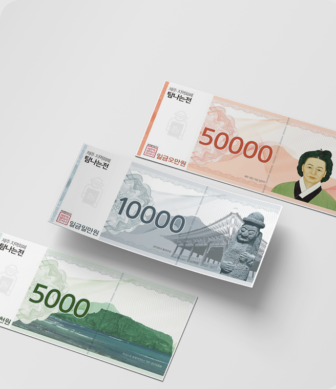 제주특별자치도가 발행하고 도내 가맹점에서만 사용할 수 있는 제주 전용 지역화폐입니다.